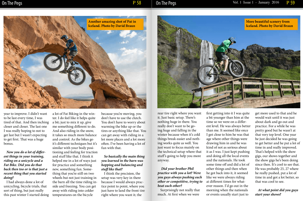 Two images showcasing trials rider Pat Smage’s amazing talents.