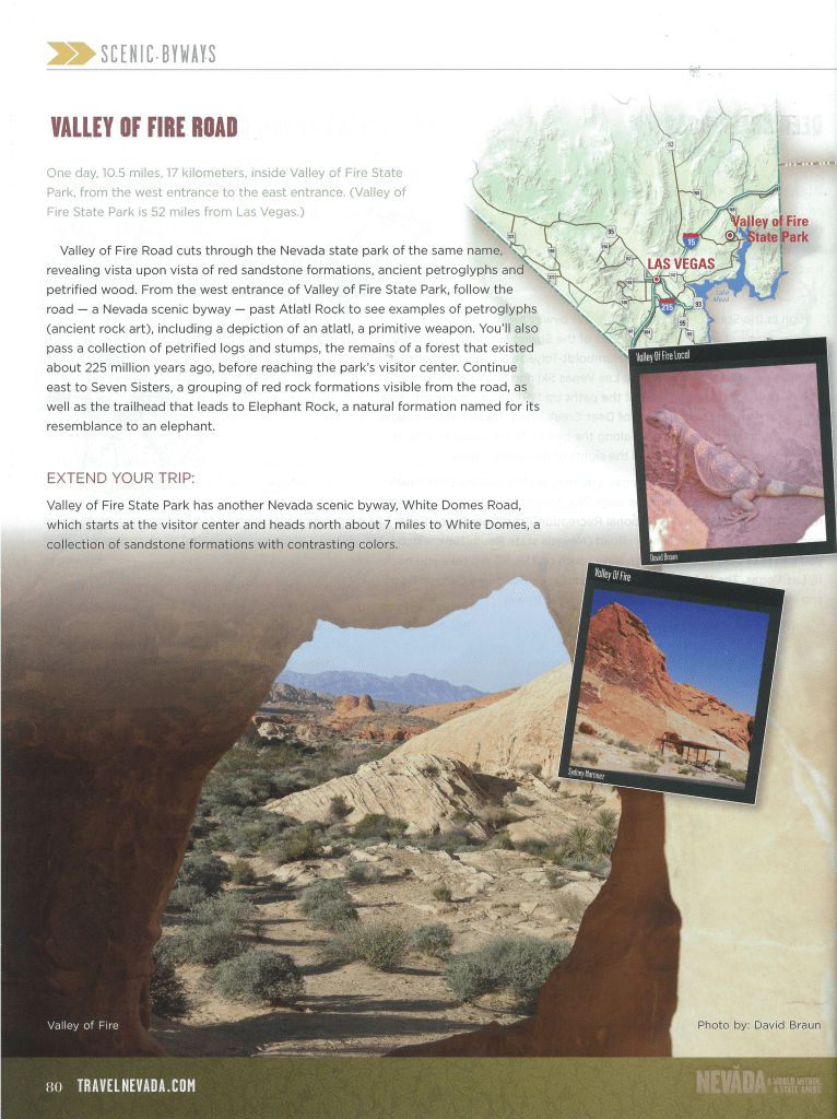 Two images used in the Nevada Guidebook coverage of Valley of Fire State Park and the road that brings you there. This cave offered a great opportunity to shoot through and the Chuckwalla Lizard just happened to walk right in front of me during the same hike.
