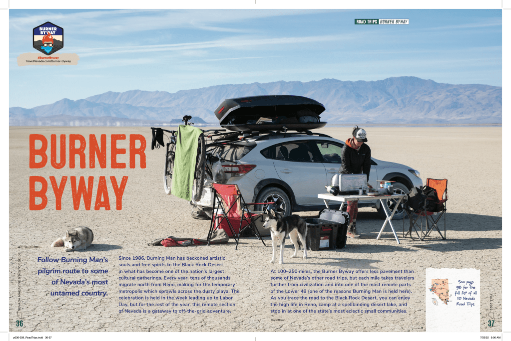 Lunch break in the Black Rock Desert. Fall 2022 Nevada Magazine and Visitor Guide.