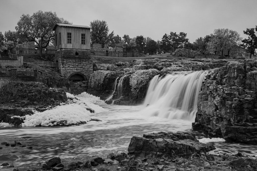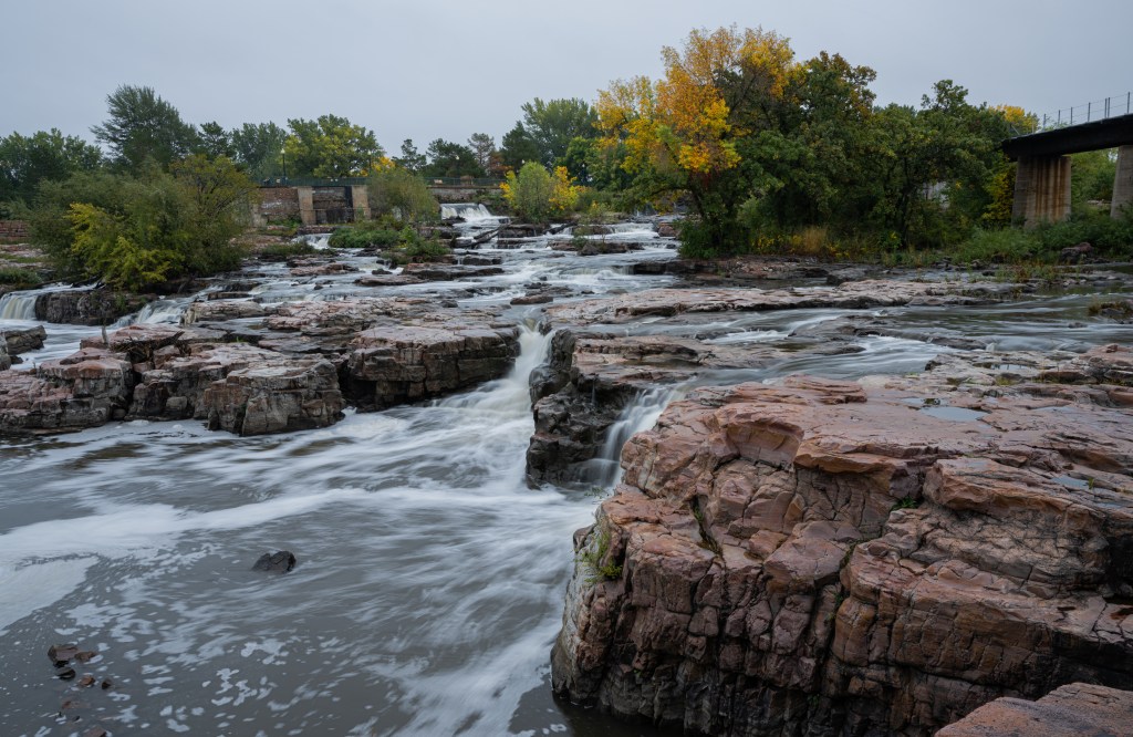 While traveling cross country we stayed in Sioux Falls, South Dakota and woke up early to shoot River Falls Park in the downtown area. The overcast conditions with a hint of Fall color were ideal for capturing this impressive urban park and the water in motion.