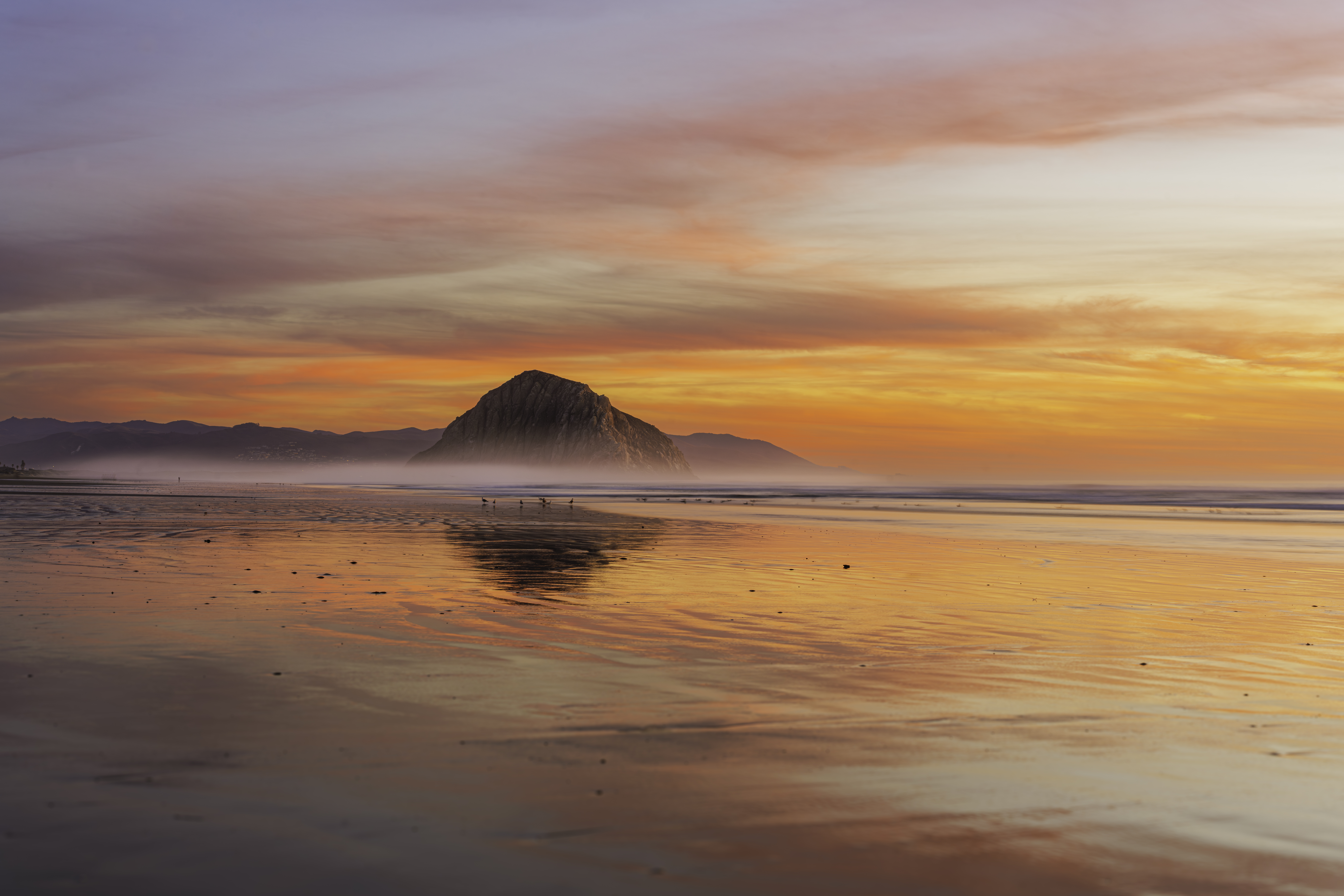 While camping at this beach I’ve had a lot of luck shooting sunsets out towards the open ocean (Example: Vibrant Morro Strand Sunset), but until recently the clouds never lined up well for me above the iconic Morro Rock at sunset. Fortunately, on the last night of our coastal camping trip, and just before a storm blew in, the sky and colors did allow me to frame the image in a way that made this geological wonder a major element in the scene.