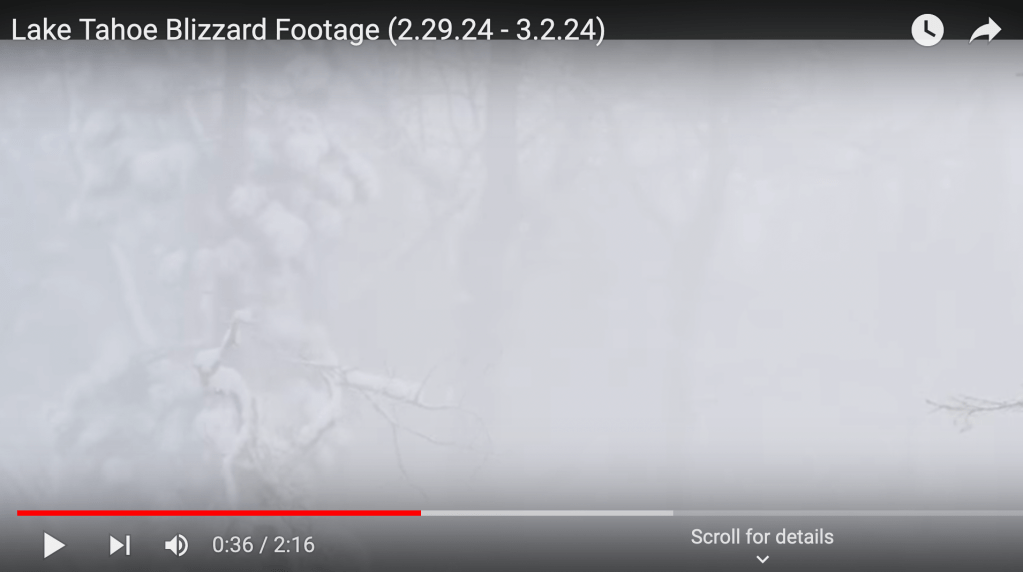 Location: Lake Tahoe Basin. South Lake Tahoe, CA. Dates: 2.28.24, 3.1.2, 3.2.24
