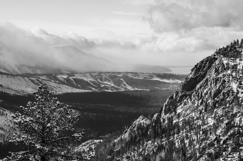 Clouds opening up and the lake coming into view in the distance at the tail end of a spring storm. I have a feeling this was my last true winter conditions ski tour of the season. Not quite a deep powder day, but almost, and plenty of coverage for April.