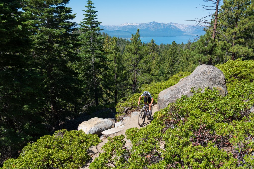 His official time was 5:21:56, which is the second fastest known time. While he didn’t get the record, second place on this 62 mile ride is a very impressive feat. Here are a few images of Stefano on a small section of this trail near Kingsbury Grade, the day before he attempted the FKT: