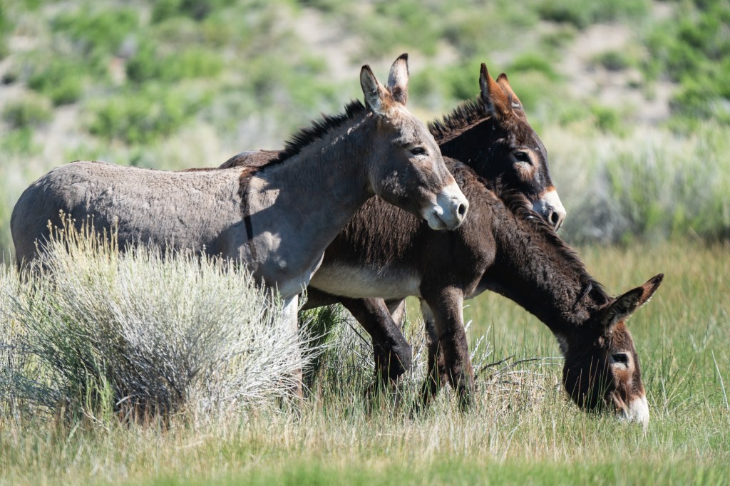 Wild burros in a minor scuffle, with two males competing over a female. After the incident they walked away like nothing had happened and rejoined the rest of the herd.