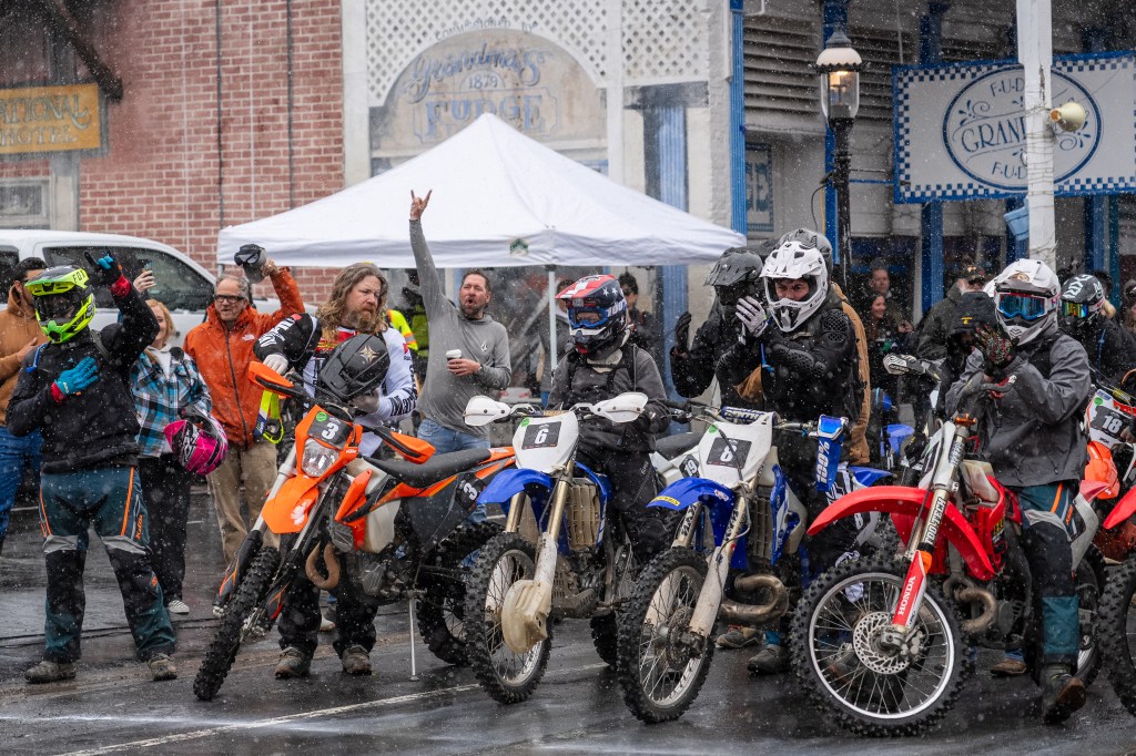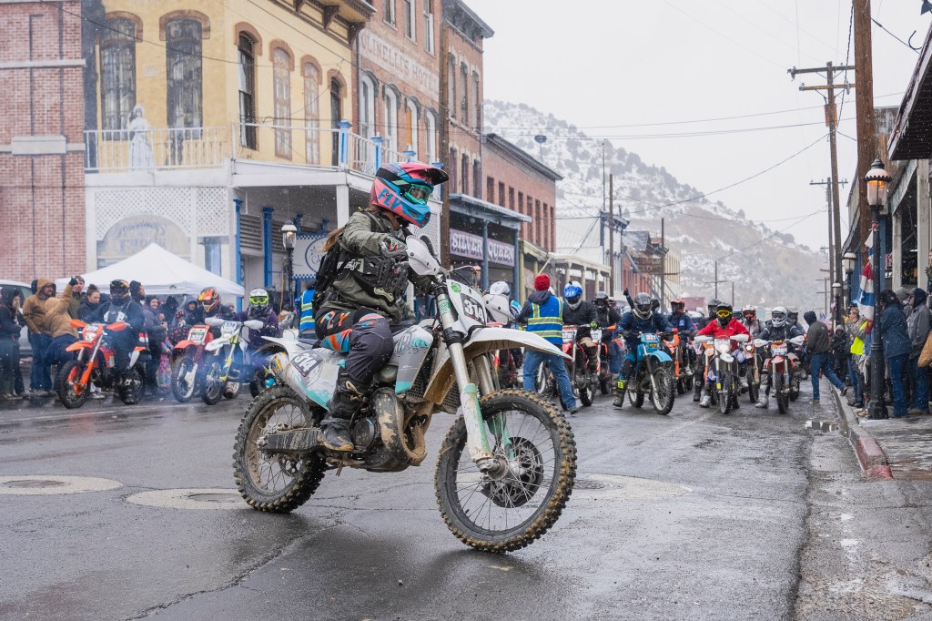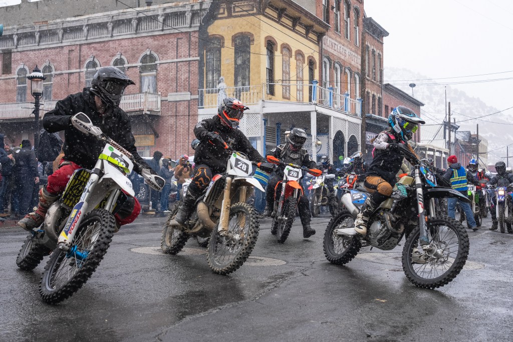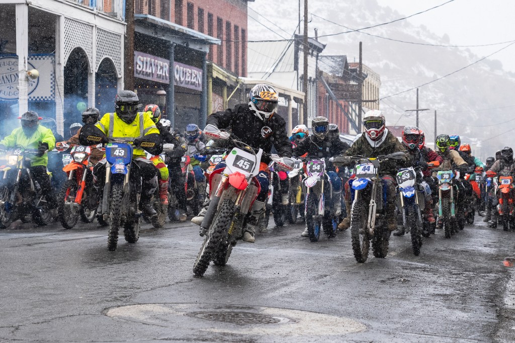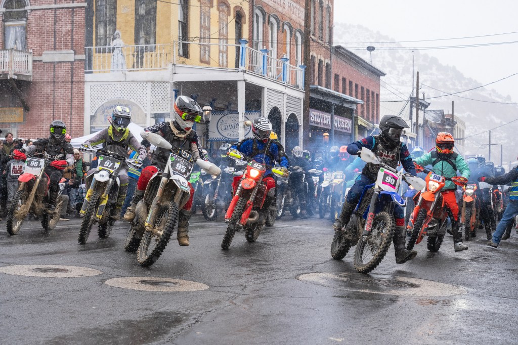 Scenes from Sunday’s Virginia City Grand Prix. Riders began in the mud and snow once again, but the course did dry out considerably by the afternoon. We even saw some sunshine before the end of the day.